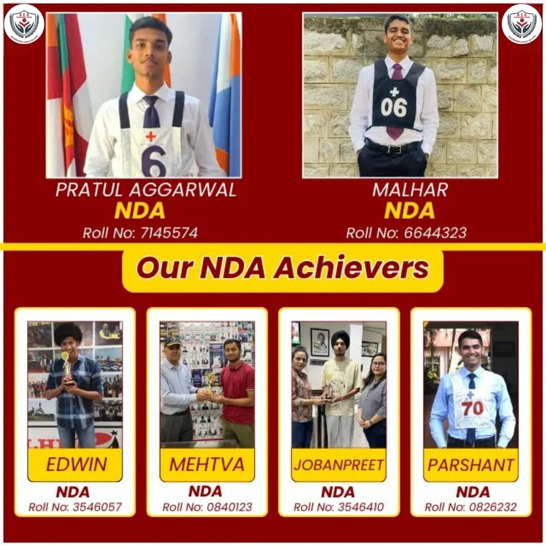 Elevate your chances of success in the National Defence Academy (NDA) exam with DCG International School specialized coaching. Our NDA Exam Coaching program provides comprehensive preparation for both Mathematics and General Ability subjects. Under the guidance of experienced faculty and retired defense officers, students receive personalized attention to excel in both written and interview segments. We prioritize holistic development, fostering leadership qualities and discipline essential for a career in the armed forces. Join DCG for focused NDA exam coaching and embark on a transformative journey towards becoming an officer in the Indian Army, Navy, or Air Force.